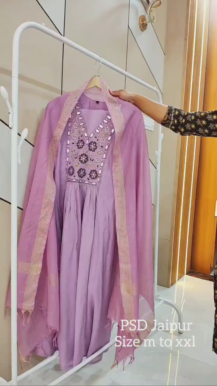Premium Mul Chanderi Anarkali Pattern kurta having lining inside, comfortable pant and mul chanderi scalping dupatta