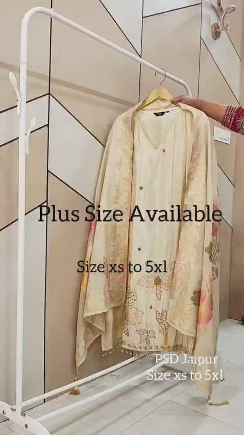 Ivory Tissue Shimmer silk suitVery beautifulIvory tissue Shmmer Silk Kurta having Thread embrodery allover (lining Inside), Comfortable pants with both side pocket, Brocade dupatta